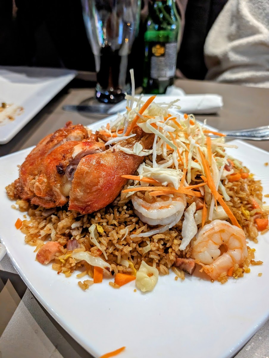 The menu here shows strong Guyanese and Caribbean-Chinese influences, with standouts like chicken wings, BBQ roast duck, and their house special fried rice regularly drawing positive nods. Lo mein options highlight a mix of proteins—beef, chicken, shrimp—and generous portions are a common thread, often enough to share. At lunchtime, the specials really come into focus, offering large plates of fried rice, chow mein, and fried chicken at price points that feel notably accessible for the area.